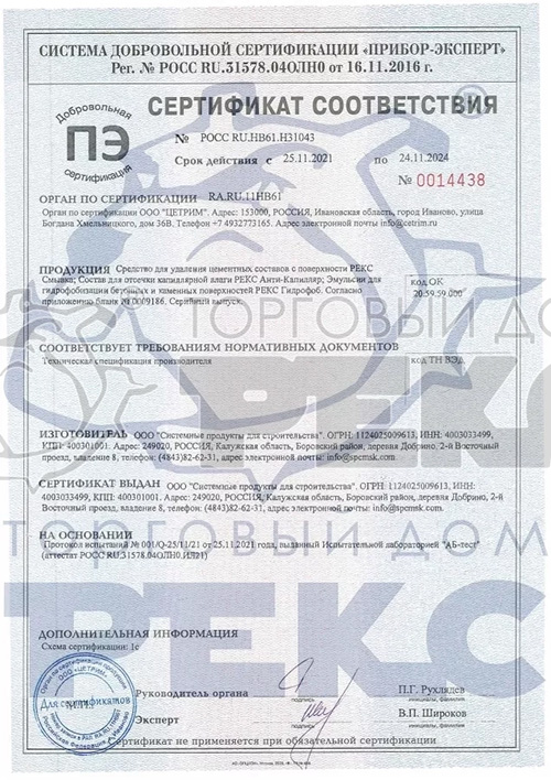 РЕКС® АНТИ-КАПИЛЛЯР не содержит опасных веществ, наличие которых требует специальной маркировки.