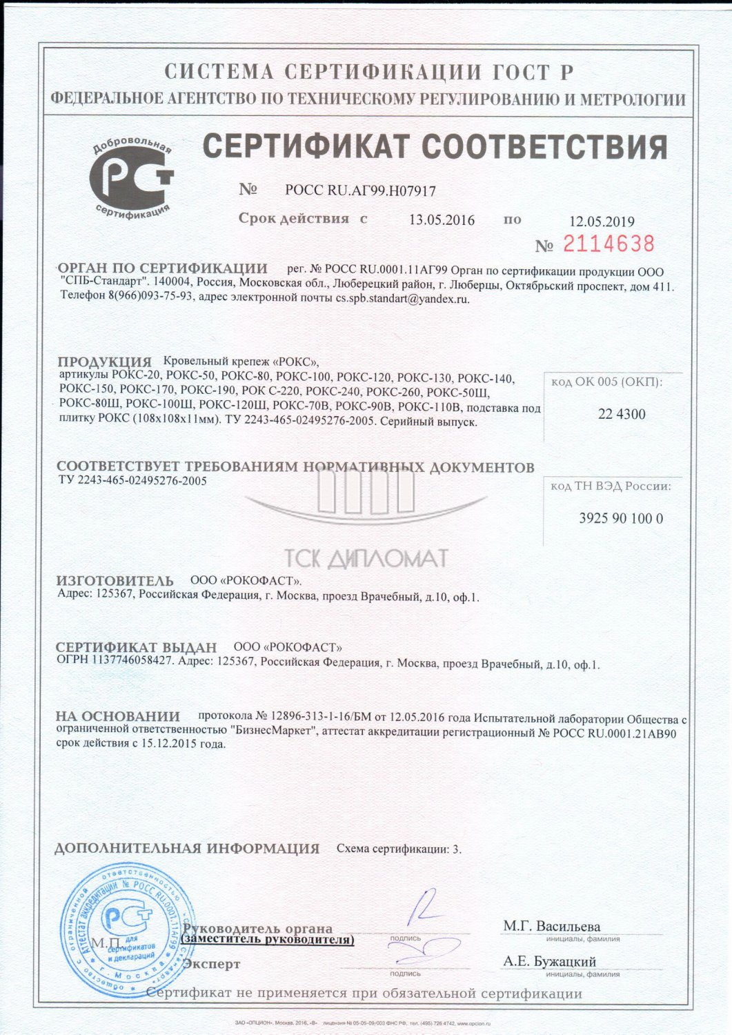 Величина разрывного усилия без разрушения и растрескивания не менее 1500 Н. Усилие на срез без разрушения и растрескивания не менее 1100 Н. Термостойкость 90 С ̊. Изменение нагрузки после УФ воздействия в течение 24 часов, после воздействия щелочи и после 60 циклов морозостойкости не более +/- 4%.