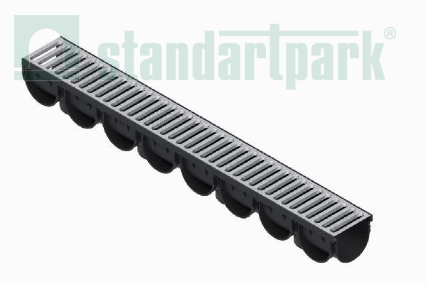 Лоток водоотводный Spark 3 пластиковый DN100 h100 с решеткой щелевой стальной оцинкованной (комплект) 088201-М, класс А15, комплект, Стандартпарк