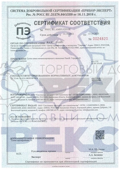 ТОРКРЕТ 45 для сухого торкретирования, 25 кг мешок, Тиксотропная ремонтная смесь, Рекс