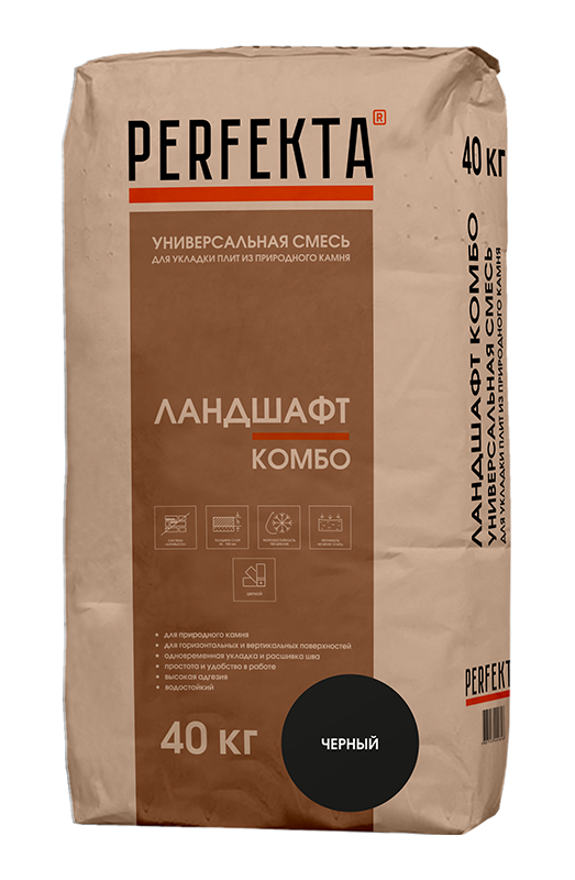 PERFEKTA Универсальная смесь для укладки плит из природного камня Ландшафт Комбо черный, мешок 40 кг