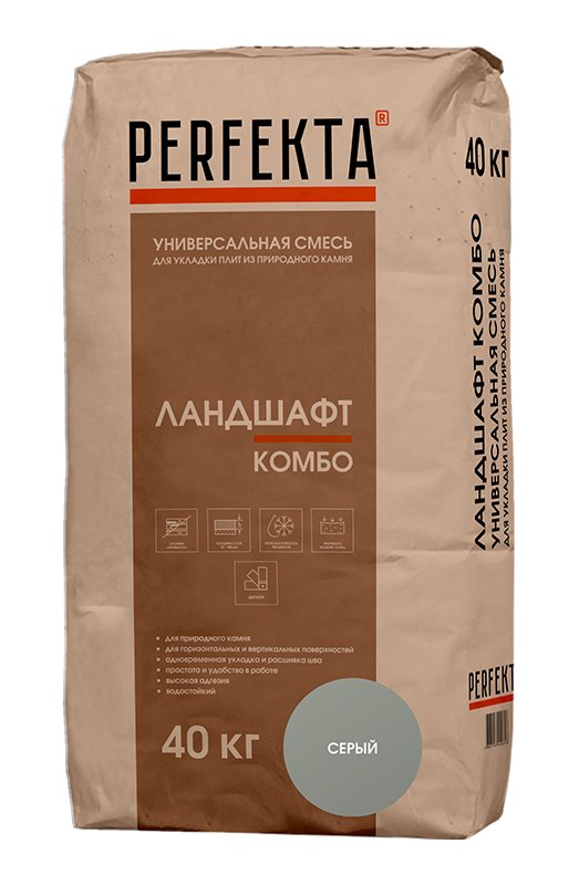 PERFEKTA Универсальная смесь для укладки плит из природного камня Ландшафт Комбо серый, мешок 40 кг