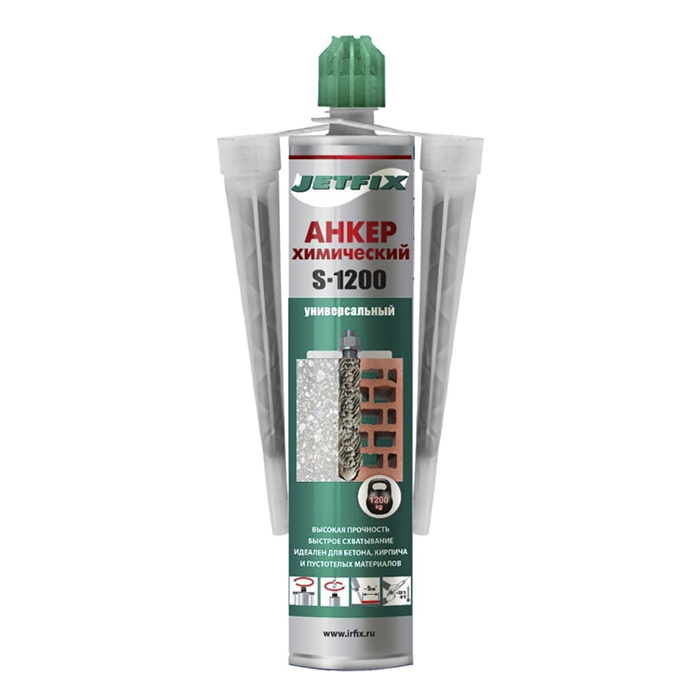 Универсальный химический анкер JETFIX серый, 300 мл на основе полиэфирной смолы предназначен для профессионального крепежа деталей при нагрузках до 1200 кг на 1 болт М12. Идеален для крепления санитарного оборудования, спутниковых тарелок, фасадов, элементов окон, навесов, стальных конструкций, ворот, ограждений, лестниц, станков, поручней и многоярусных стеллажей с помощью болтов, резьбовых шпилек и арматурных стержней.