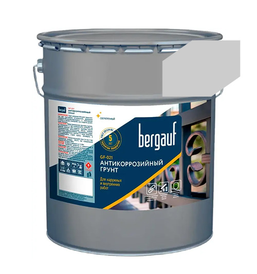 ГФ-021, 6 кг, Антикоррозийный грунт для наружных и внутренних работ, светло-серый, Bergauf